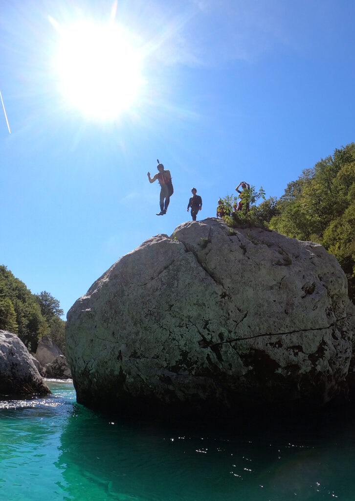 PRIVÁT RAFTING túránkon garantáltan csak VELETEK raftingozunk a smaragd zöld SOCA folyón, vagy igény esetén canyoning túrázunk a Bovec közeli SUSEC canyonban.